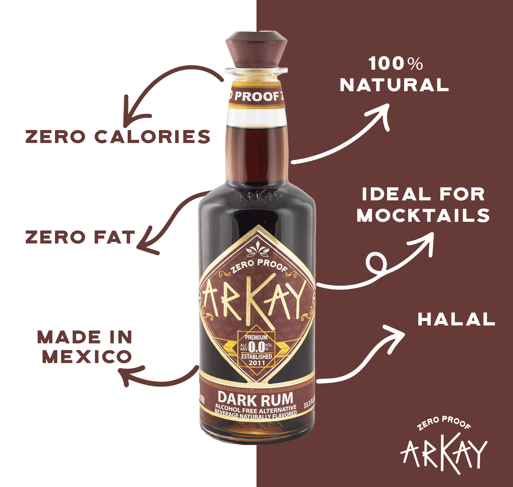 Arkay Zero Proof Dark Rum Alternative Alcohol Free 33.3 FL OZ / 1 Liter